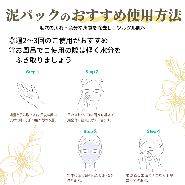 天然ミネラルが含まれており、免疫機能の活性化などが期待されます。吸着性が高く、汚れを取り除くパック効果も。
