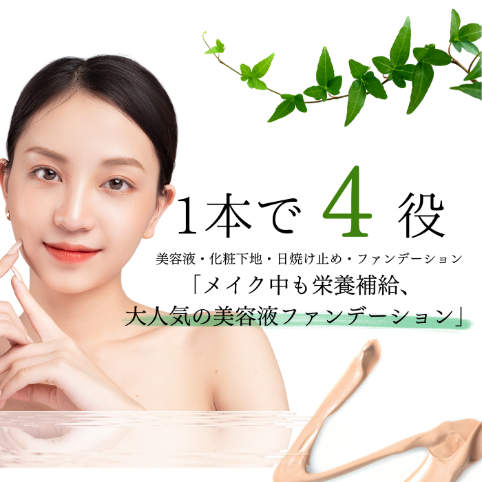 素肌の魅力を自然に引き出す花とハーブの美容液ファンデーションです。15秒で終了の簡単メイクで、長時間しっとり感が持続します。