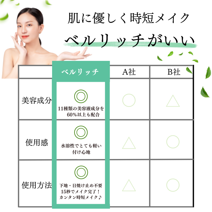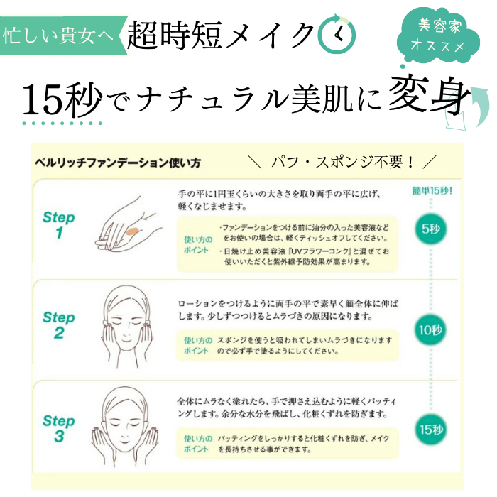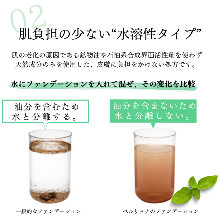ベルリッチのファンデーションは、オリジナル製法により、天然植物成分を使用しています。