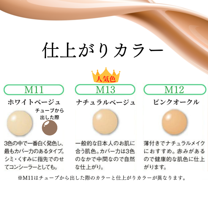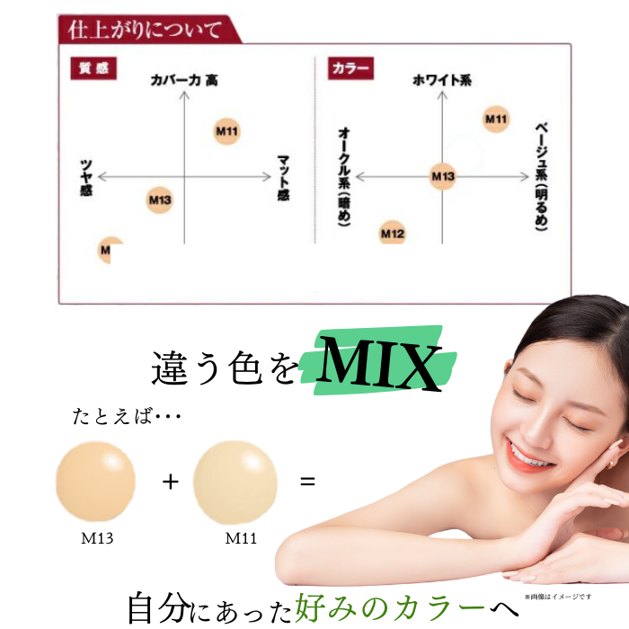 M11やM12、またはカラーファンデーションを混ぜていただくことでお好みの色に調整できます。