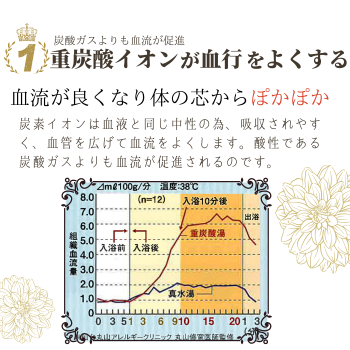 血流が高まるのは入浴後10分以降ですので、ゆっくり15分以上の入浴をおすすめします。