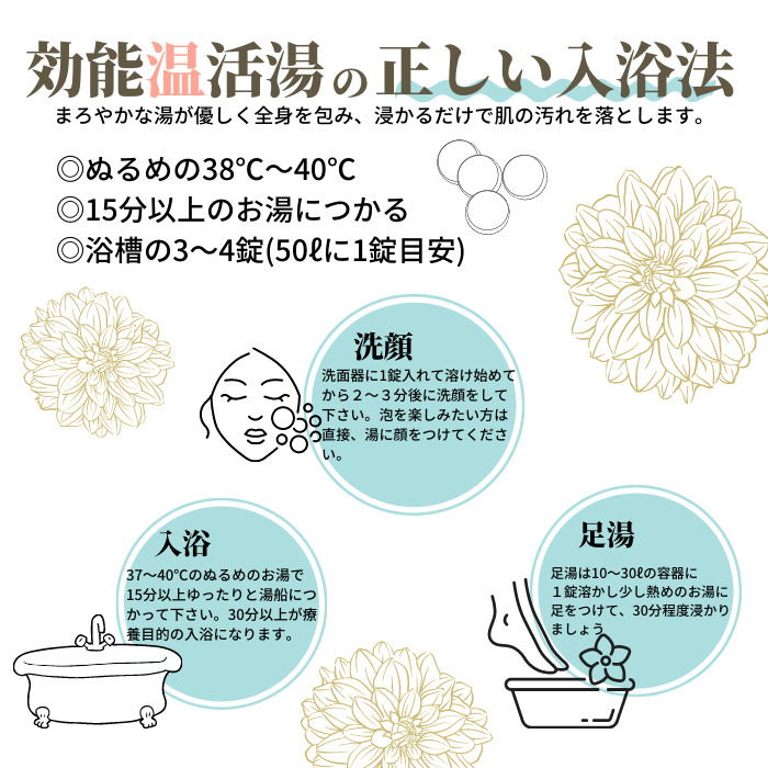 ぬるめのお湯(37〜40℃)160?に3錠を目安に溶かしてご使用ください。
