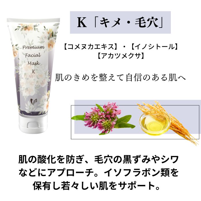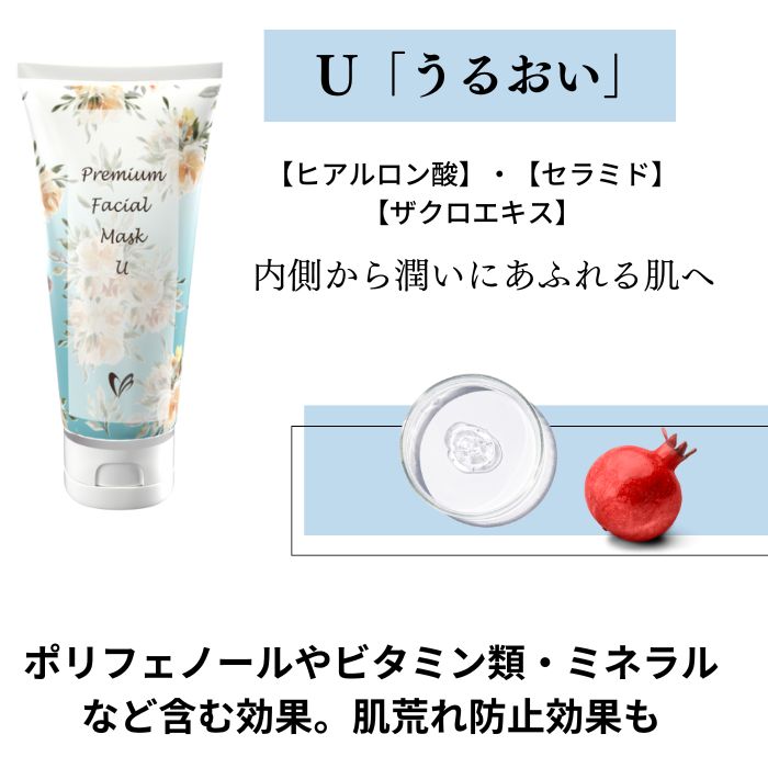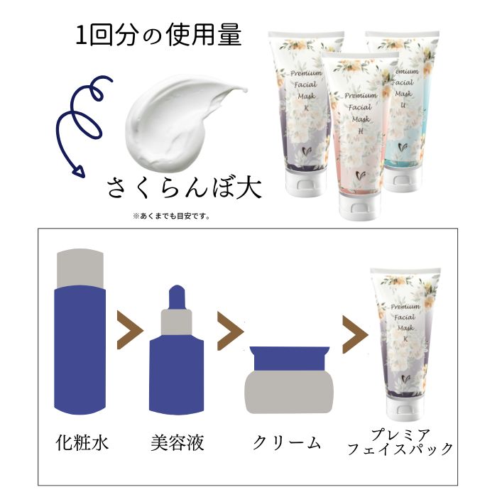 全成分:【プレミアフェイスパックU】水,グリセリン,ステアリルアルコール,ステアリン酸,セテアリルアルコール,イソステアリン酸エチル,オリゴペプチド-24,ヘキサカルボキシメチルジペプチド-12,セラミドNP,ヒアルロン酸Na,ザクロ果実エキス,水添レシチン,ステアリン酸グリセリル,ポリソルベート60,(アクリロイルジメチルタウリンアンモニウム/VP)コポリマー,ラベンダー油,オレンジ油,ローマカミツレ油,セージ油,ユーカリ油,カミツレ油,BG,水酸化K,EDTA-3Na,DPG,ジメチコン,メチルパラベン,プロピルパラベン,フェノキシエタノール,香料 【プレミアフェイスパックH】水,BG,ステアリン酸,ペンチレングリコール,スクワラン,加水分解コラーゲン,ヘキサカルボキシメチルジペプチド-12,オリゴペプチド-24,ローヤルゼリーエキス,ジラウロイルグルタミン酸リシンNa,クリサンテルムインジクムエキス,シクロデキストリン,ヒドロキシプロピルデンプンリン酸,ステアロキシヒドロキシプロピルメチルセルロース,グリセリルグルコシド,グリセリン,PCA-Na,ソルビトール,ミリスチルアルコール,ベヘニルアルコール,ステアリン酸グリセリル,ステアリン酸ポリグリセリル-10,オレイン酸ポリグリセリル-10,パルミチン酸エチルヘキシル,ラベンダー油,オリーブ果実油,イランイラン花油,カラメル,ホホバ種子油,ベルガモット果実油,ダマスクバラ花油,香料 【プレミアフェイスパックK】水,グリセリン,ミネラルオイル,イノシトール,コメヌカエキス,アカツメクサ花エキス,ヘキサカルボキシメチルジペプチド-12,オリゴペプチド-24,スクワラン,カルボマー,(アクリレーツ/アクリル酸アルキル(C10-30))クロスポリマー,BG,PG,水酸化Na,安息香酸,安息香酸Na,HEDTA-3Na,フェノキシエタノール,メチルパラベン,ラベンダー油,オレンジ油,カミツレ油,ティーツリー葉油,セージ油,ローマカミツレ油,ローズマリー油,香料