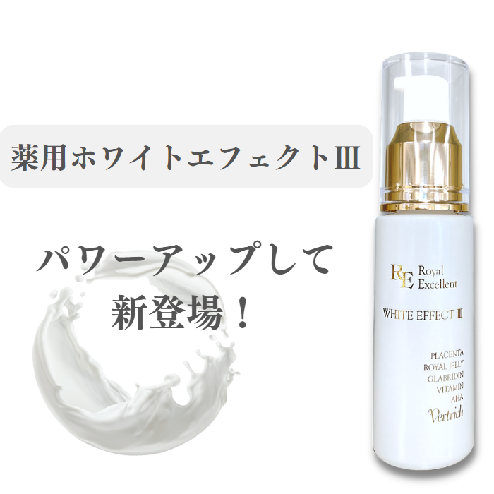薬用ホワイトエフェクト・Wエフェクトの後継商品です。美容成分をさらにバージョンアップさせて、医薬部外品(薬用)として再登場!!